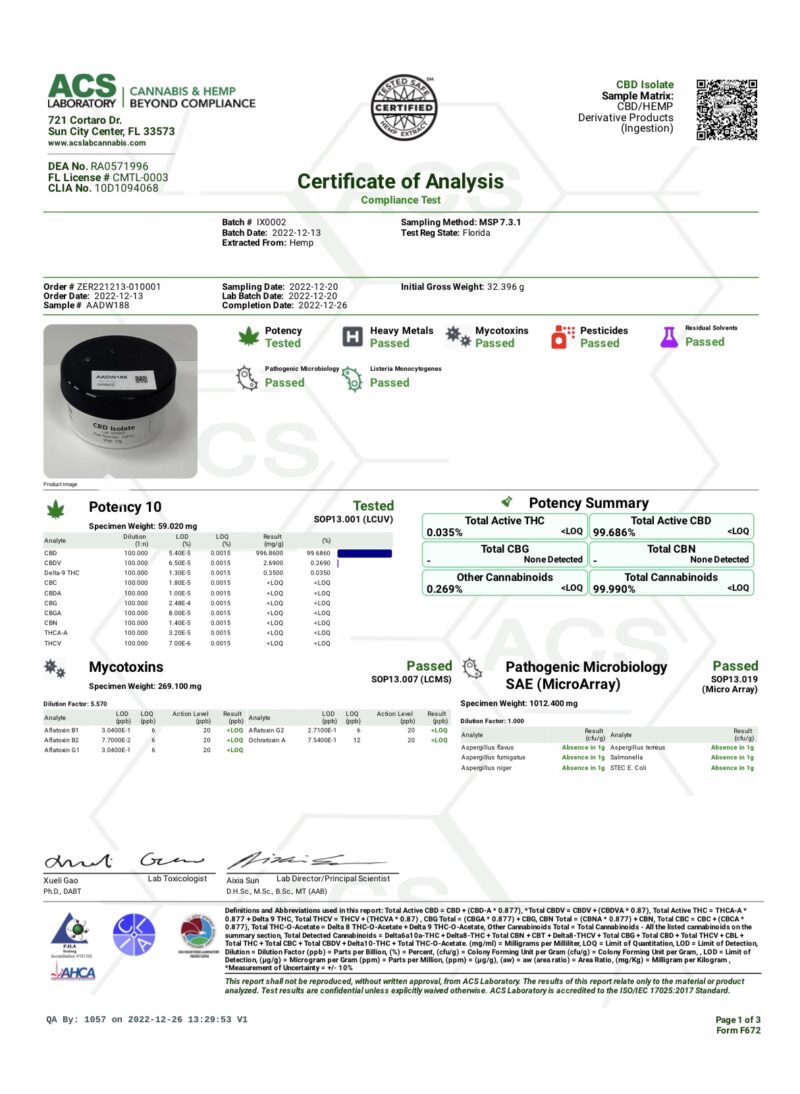 CBD (Cannabidiol) Isolaat Kristallen 99.68%